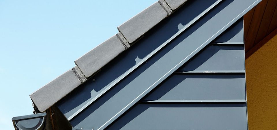Dieses Dach wurde mit verzinktem, farbbeschichtetem Blech eingedeckt. Kamine, Entlüftungen und dergleichen wurden fachmännisch in das Blechdach eingebunden.