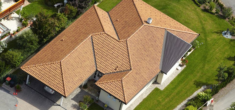 Um den mediterranen Stil des Hauses auch auf dem Dach fortzusetzen, wurde der Tonziegel „Carmen“ naturrot verwendet. Dieser verleiht dem Dach des Bungalows südliches Flair.